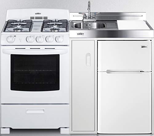 Summit Appliance ACK54GASW 54" Wide All-in-One Kitchenette with 115V 4-Burner Gas Range, Refrigerator-Freezer, Sink, Cutting Board and Cutlery Storage, and a Storage Cabinet